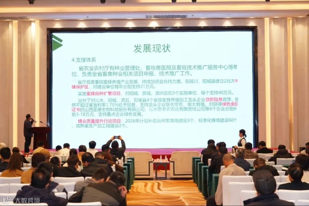 李树军在关于山西蜂业情况介绍的报告中,介绍了山西省蜂业的发展现状、区域特色与支撑体系,以及当前产业面临的挑战,并提出了未来的发展方向。