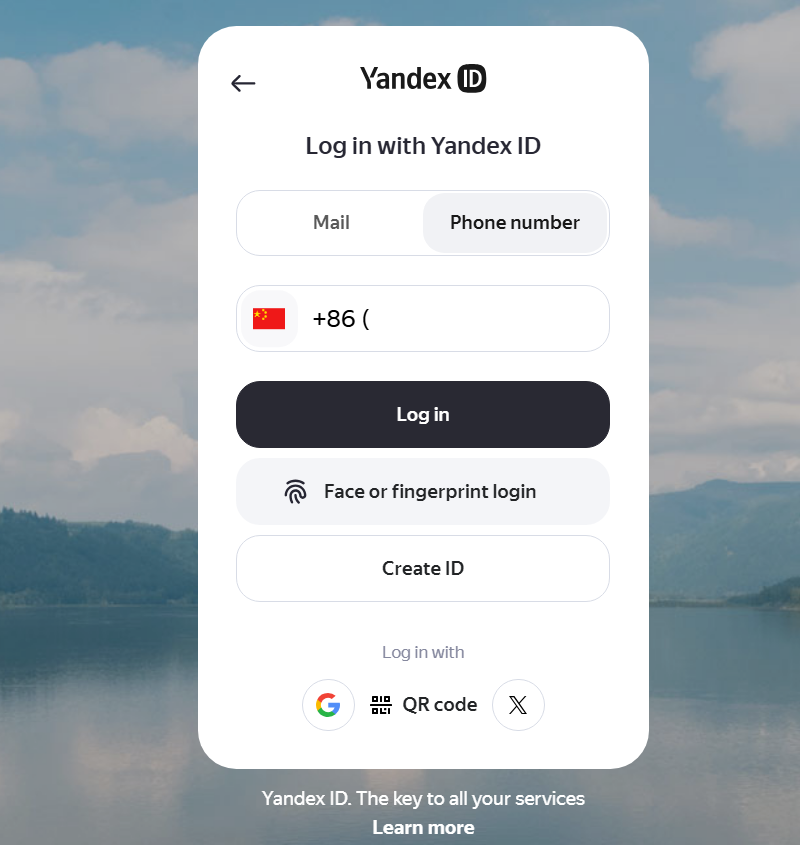 第二步:创建你的Yandex ID 在弹出的登录窗口中,找到并点击“Create Yandex ID”(创建Yandex ID),正式开始注册流程。