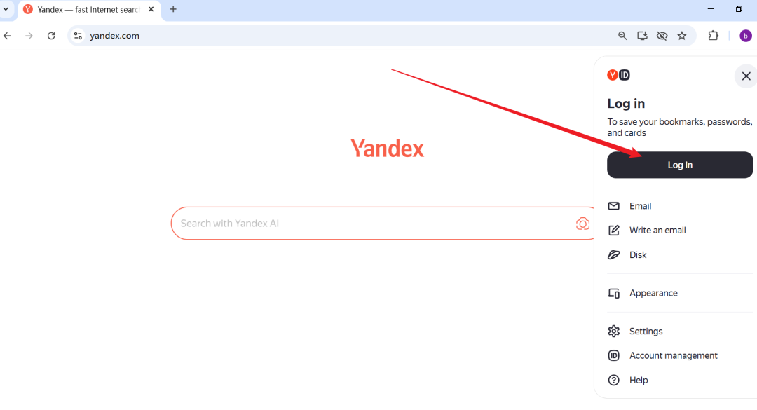 第一步:访问官网,进入登录页在浏览器中输入 yandex.com,进入其主页。随后,点击页面右上角的“Log in”(登录)按钮。