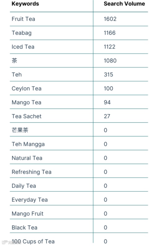 以下是我们根据一款水果茶朝招的关键词数量: