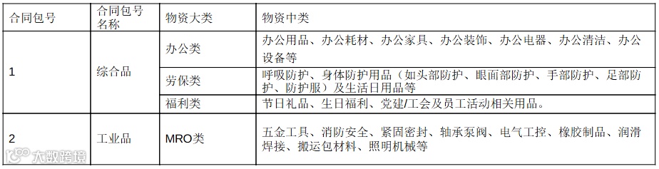 本项目划分2个合同包,综合品类和工业品类,其中综合品类拟定入围电商数量为5家,工业品类拟定入围电商数量为5家。