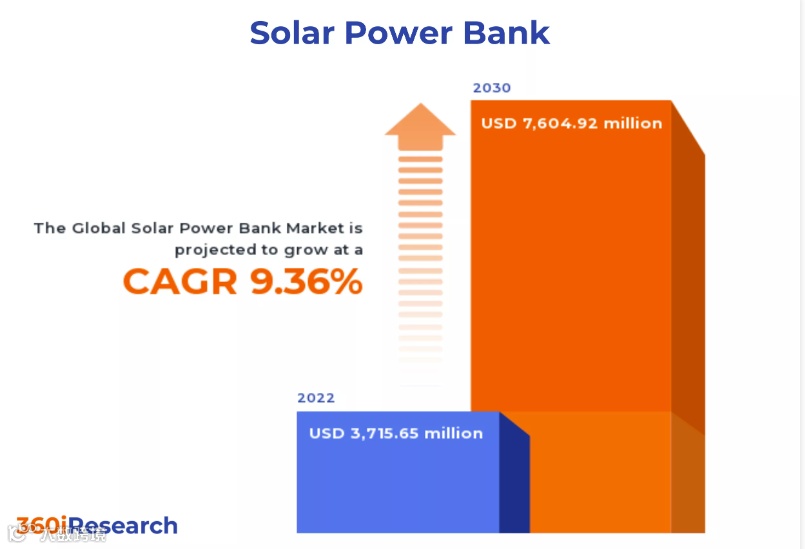 根据360iresearch数据显示,2022年全球太阳能充电宝市场规模达37.15亿美元,预计2023—2030年间,该市场将以9.36%的复合年增长率逐年增长,到2030年将达76亿美元,越来越多人使用太阳能充电宝,增加对可持续能源领域的消费。