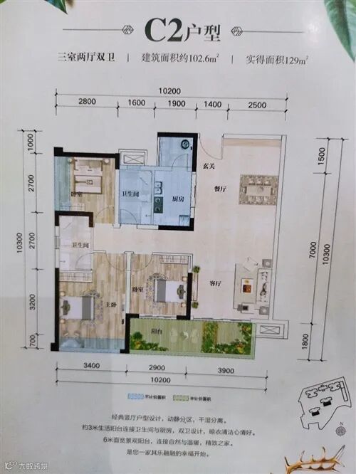 房屋详细信息: 110平精装套三,户型方正,采光超好,家具家电齐全,购买即可拎包入住