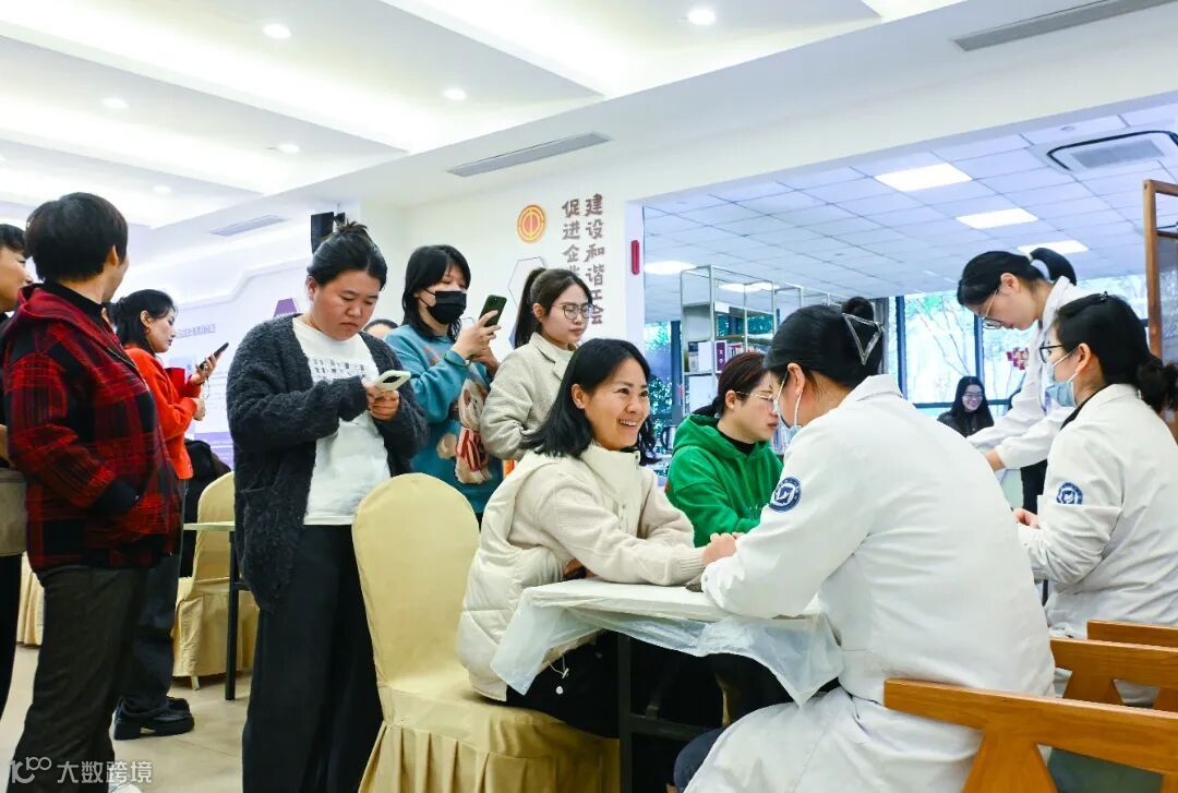 与此同时,两位护士同步开展了头部经络疏通和耳穴压豆体验服务。许多参与者反馈:“做了头部经络疏通后,紧绷感明显缓解,整个人轻松了,工作起来也更有精神了。”