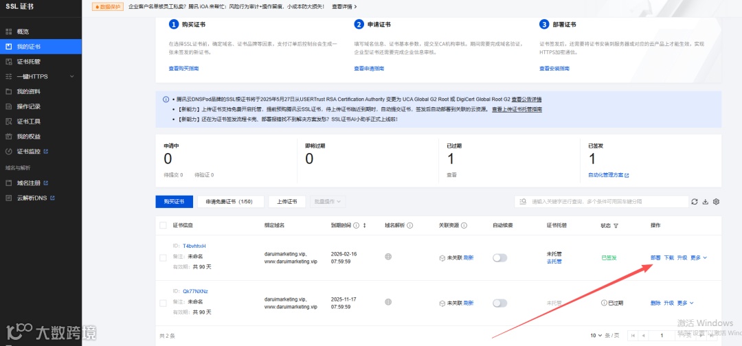 今天查看短信时看到博客网站ssl证书过期。以下内容纯做笔记使用;希望能帮到正在寻找答案的你~本文以免费