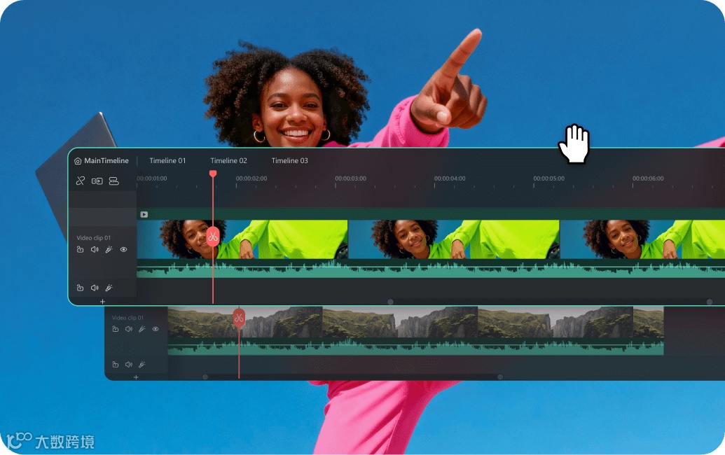 专业剪辑党狂喜!万兴喵影新增「双时间线剪辑」模式,让你可以在两条时间线之间来回切换,一条时间线统览全局,另一条则专注于微调精修,在粗剪与精剪间自如切换,让专业剪辑如虎添翼。