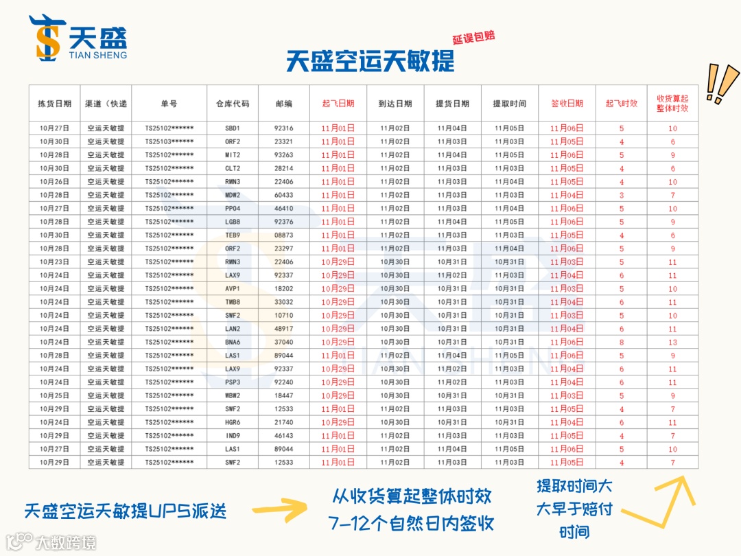 (1)UPS/联邦近期交付后大部分交付当天提取,小部分晚1天提取,极小部分晚2天提取
