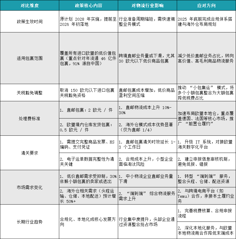 清关环节的变化同样不容忽视。欧盟海关将强化全包裹监管,要求提交完整发票、HS 编码等信息,电子运单数据完整性成为关键。短期内直邮包裹清关时效可能延长 1-3 个工作日,物流企业需升级 IT 系统对接海关平台,建立税费代收代缴机制,合规成本显著上升。小型企业因缺乏技术资金支持,面临被淘汰风险,行业集中度将进一步提升。
