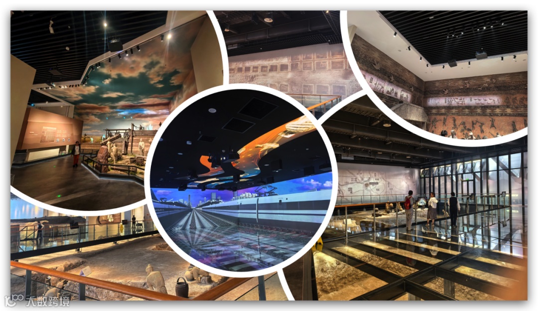 ·1 层遗址展厅:针对古代馒头陶窑与水井遗址,多台投影机从顶部投射动态画面,强化遗址轮廓辨识度;数台投影机在遗址旁墙面实现无缝拼融,以震撼的视觉效果呈现陶器制作工艺与水井使用场景,配合讲解让观众直观理解古代生活生产方式。