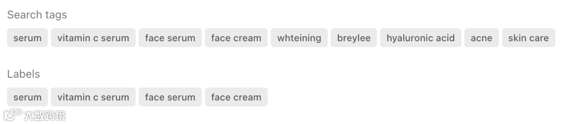 标签是您给产品设定的关键词,它可以帮客户搜索到您的产品。良好的搜索标签包括: