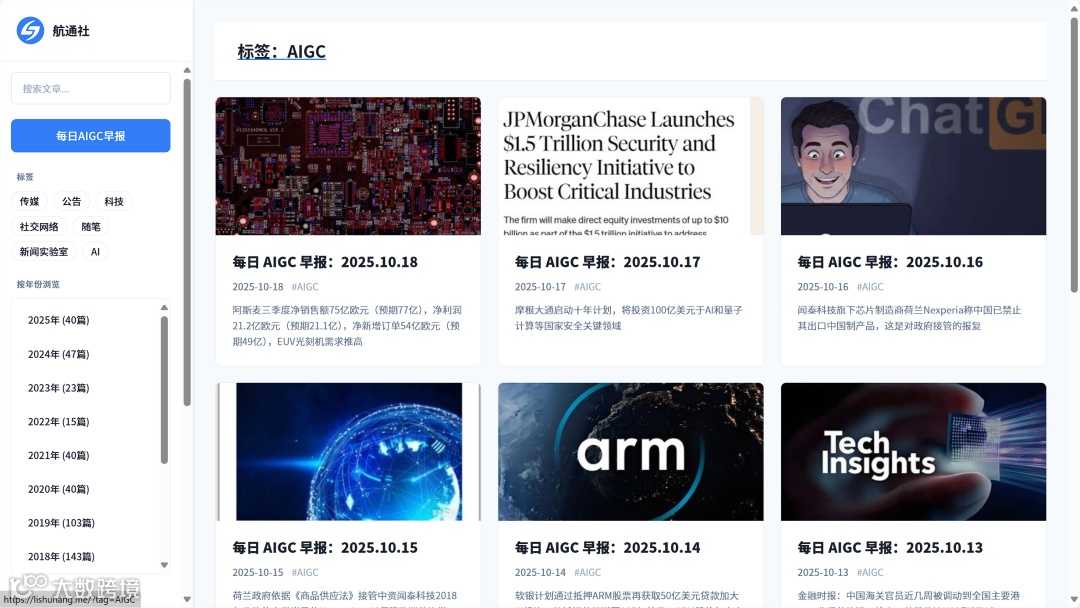 内容管理:将AIGC早报从主列表分离,建立独立入口,保持主博客内容的专注性。