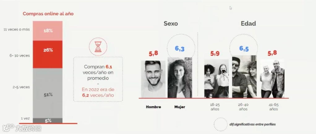 3.墨西哥时尚电子商务的总体平均渗透率高达43%,然而在26至40岁的用户之间渗透率最高,尤其在女性群体中占比高达45%,而相较于2022年的研究数据,男性用户这一比例也有了四个百分点的增长,达到了41%。