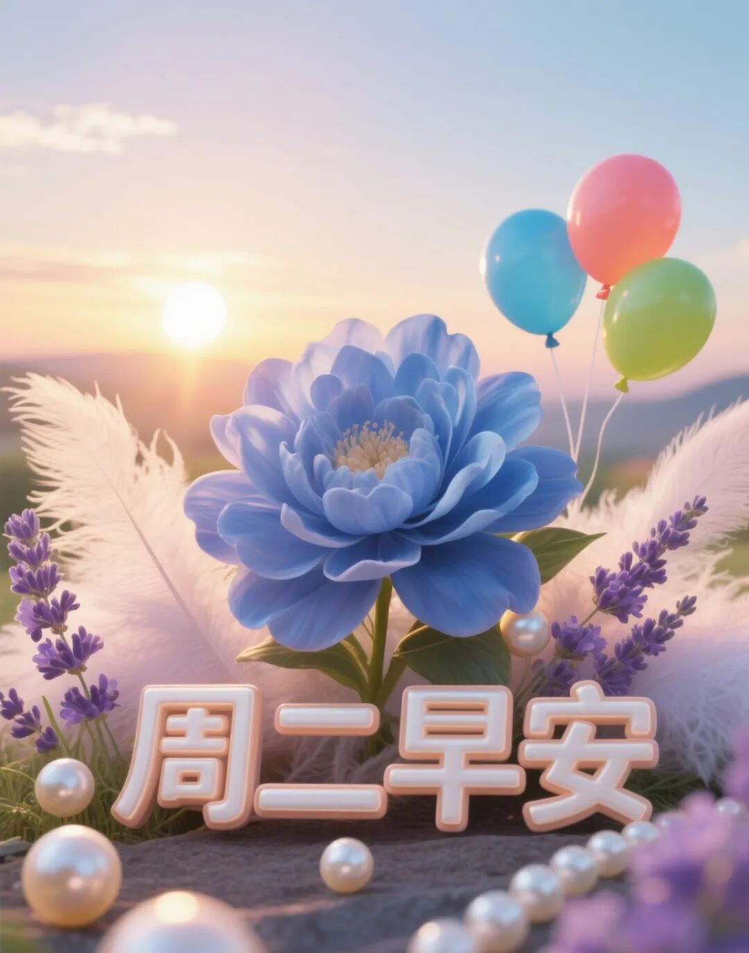 1. 周二早安呀☀️!新的一天带着好运启航,锦鲤跃出水面送福气🐠,愿你工作顺风顺水没烦恼🌊,生活甜甜蜜蜜有惊喜🍬,抬头见喜、低头拾福🥰,每一步都走在阳光里,元气满满一整天呀✨!