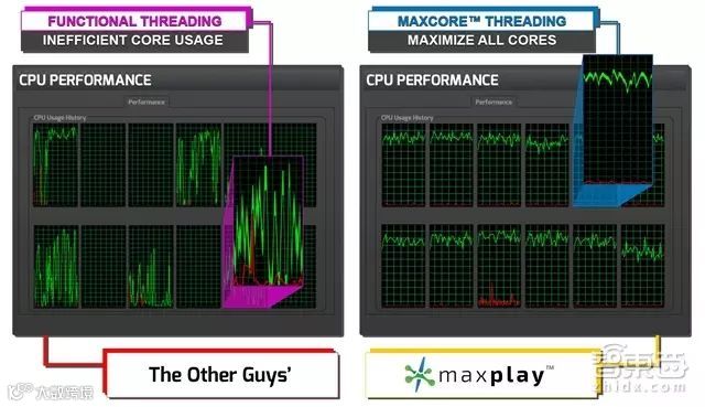 在2016年GDC大会上,MaxPlay展示了其自主研发的可扩展数据并行计算兼渲染算法MaxCore,旨在从底层提升VR性能表现[k]。