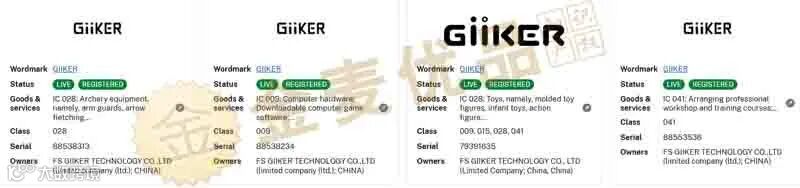 此次维权的核心焦点主要围绕GiiKER井字棋于2025年9月中旬下证的版权图片展开,涵盖了井字棋的全方位展示图,从产品的整体外观到细节设计,都在版权保护范围之内。这意味着,任何未经授权使用这些展示图的行为,都可能构成侵权。不仅如此,FS GiiKER Technology Co. Ltd.在美国还注册有GiiKER 文字商标,其涵盖的类目极为广泛,包括射箭器材、计算机硬件、玩具以及培训课程等,卖家若未经授权使用该商标,同样会面临严重的法律风险。