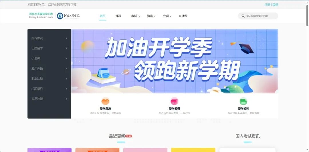 新东方推出的“新东方多媒体学习库”包含国内考试、应用外语、出国考试、实用技能、大学生求职和职业认证与考试等6大类能满足读者不同层次的不同学习需求,并且课程全部都是由新东方面授班原堂录制下来并经过后期多媒体技术制作而成的互动性极强的音频、视频形式的教学课程,全部是由新东方最优秀的名师讲授。开通主要课程:口语学习空间、大学英语六级、考研英语等。