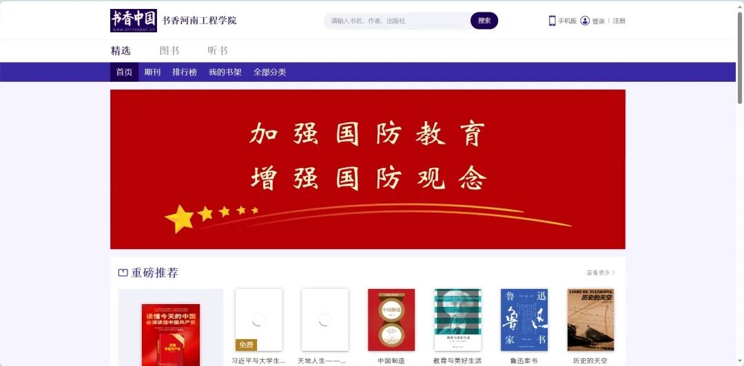 中文在线“书香中国”是专为高等教育精心打造的在线阅读平台,数字内容类型覆盖全面、分类详尽,能满足各种类型读者不同的阅读需求。平台拥有10万余种正版数字图书,汇集近300家出版机构,涵盖了中图法22个类别的图书资源的精品阅读馆。 库中涵盖2000多位知名作家的近2000部大奖作品和知名作品,包括巴金、郭沫若、余秋雨、梁晓声、张恨水、贾平凹、二月河、熊召政、丁玲刘慈欣等。