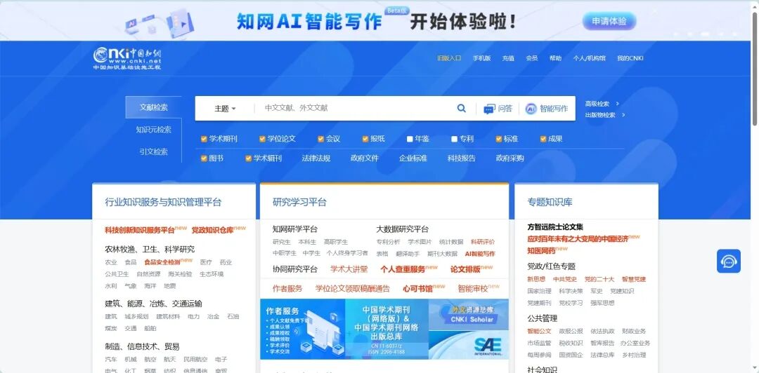 中国知网(CNKI)全文数据库是我国知识基础设施工程的重要成果,是世界上最大的连续动态更新的中国期刊全文数据库,收录了国内8200 多种重要期刊,内容覆盖自然科学、工程技术、农业、哲学、医学、人文社会科学等各个领域,全文文献总量达 2200 多万篇。目前我馆最新订购了中国知网期刊全库【除医药(E)、农业专辑(D)】、博士论文、硕士论文、中国会议论文、国际会议论文5个源数据库产品。