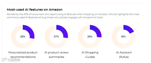 此外,AI技术在电商领域的应用也成为一大亮点。亚马逊推出了如Rufus等AI工具,用于个性化产品推荐和消费者行为分析。虽然目前53%的消费者表示尚未使用过亚马逊的AI功能,但28%的消费者表示会常使用个性化产品推荐。这意味着AI驱动的电商市场在未来将成为推动销量增长的关键因素。跨境电商平台如果能够有效整合AI技术并提供个性化服务,将大大增强在市场中的竞争力。