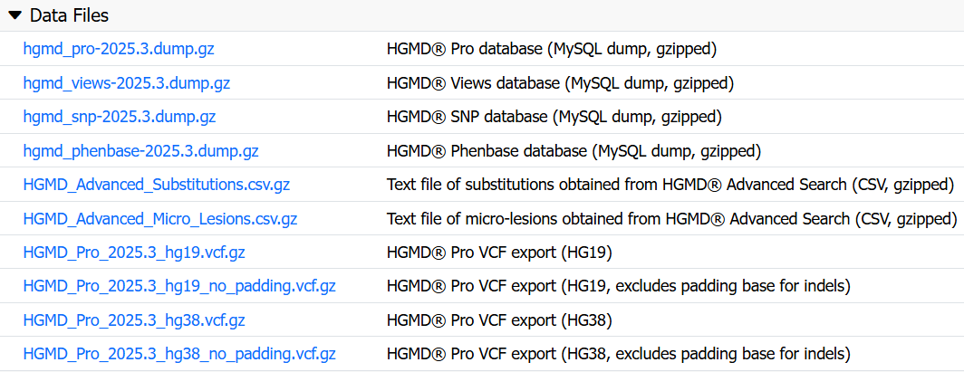 以上就是HGMD在线版的主要功能。当然,它也有下载版,提供全套数据库文件,方便用户使用HGMD的数据进行流程开发、机器学习模型训练等,点击了解详情