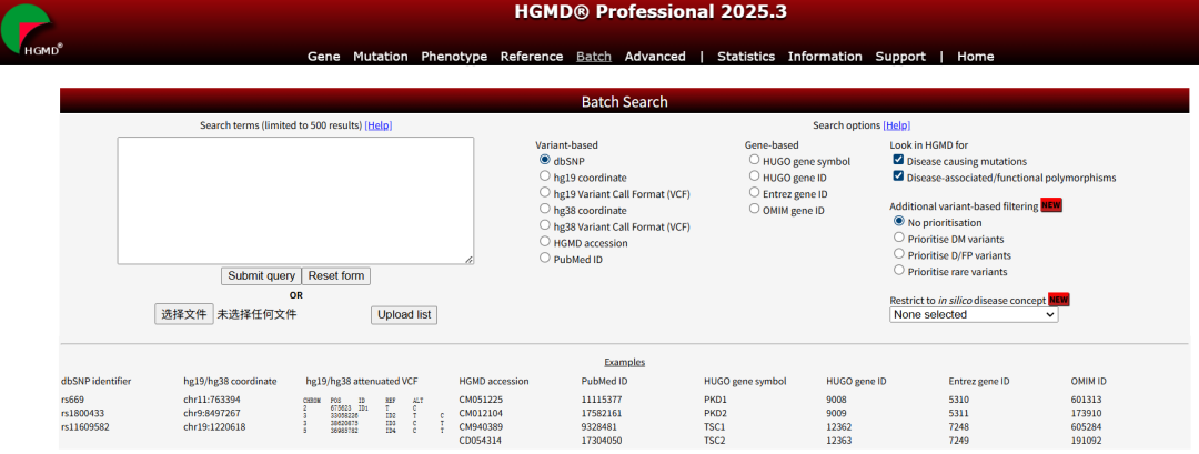 人类基因突变数据库(Human Gene Mutation Database,HGMD)是一个整合了己知和已发表导致人类遗传性疾病基因突变的综合性数据库,能够为医学和临床遗传学人员提供重要的参考信息,在单基因遗传病研究、产前诊断和生殖遗传中广泛使用。截至2025年第三季度发布的版本,HGMD数据库已经收录了超过55万个突变,并且每个季度进行更新。