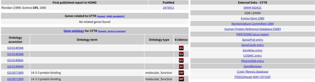 在突变详情页中,列出了首次报道该突变的文献,以及功能、表型等方面的支持文献,comment中包含数据库信息编审人员的备注,这体现了HGMD人工审核与维护的痕迹。