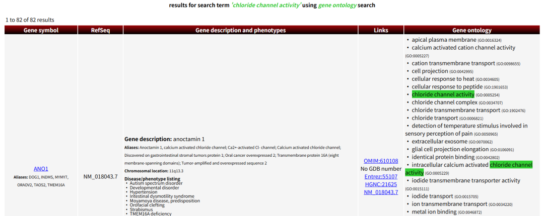 此外,还可以按照GO搜索基因。以chloride channel activity为例进行GO搜索。