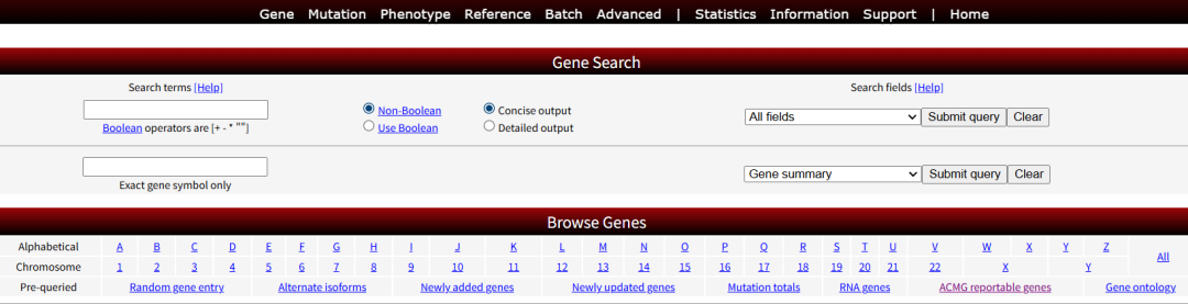 点击上方菜单栏的Gene,即可进入基因搜索界面: