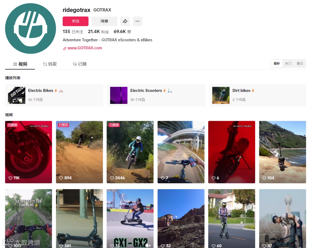 Gotrax的本土化不仅体现在生产端,在用户触达端更是如此。品牌通过开通TikTok、YouTube、ins三大社交媒体自营账号,吸粉超过6.5W人。