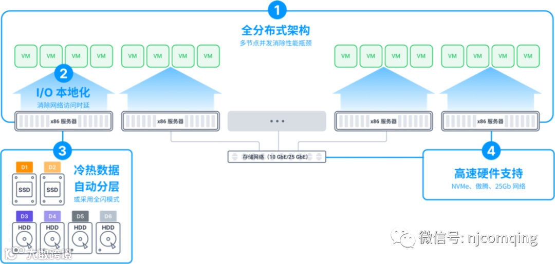 存储系统整体性能的大幅提升。分布式架构提升了系统整体的聚合性能,可以在不改变硬件配置下进一步降低访问延迟。