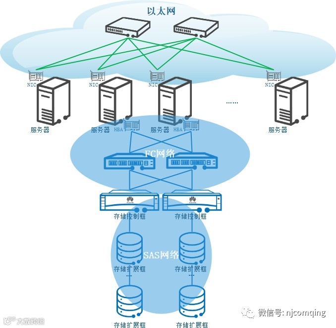 图 12 基于FC和SAS协议的经典存储网络