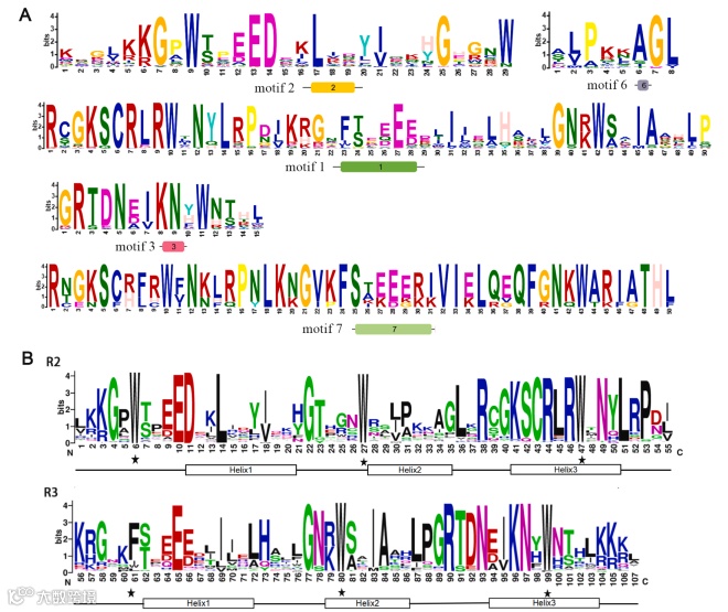 1.MYB家族全基因组鉴定与分类:从非洲菊基因组中鉴定出319个GhMYB基因,依据结构域特征分为4类,其中R2R3-MYB亚家族含147个成员,占比近46%。系统发育分析显示,约75%的R2R3-MYB成员归属于VIII亚家族,推测该亚家族经历多次基因复制事件,可能参与非洲菊特有代谢调控,如双色花瓣形成。
