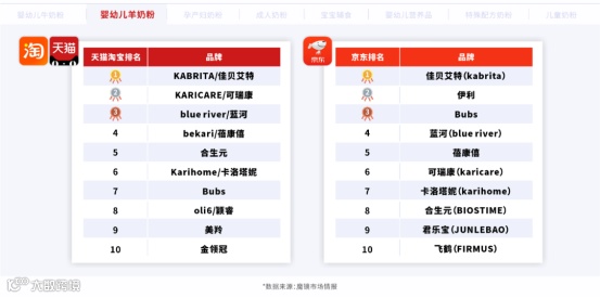 具体来看,淘系羊奶粉GMV从2021年的10.16亿元下降至2022年的8.7亿元,降幅达14.6%;而京东平台羊奶粉GMV则从2021年的12.47亿元增长至2022年的14.57亿元,增幅达16.9%,显示出京东平台更受消费者青睐。