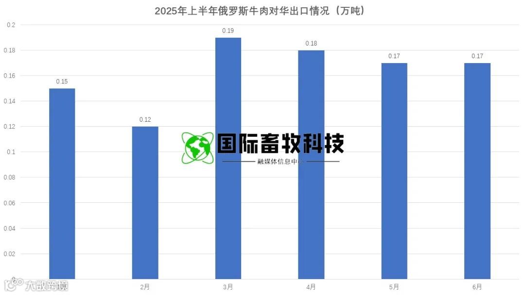 俄罗斯在中*俄经贸合作推动下,上半年进口 1 万吨,占小众市场的 10.3%,均价 4895 美元 / 吨,同比下降 2.3%,6 月进口 1730 吨,同比增长 40.2%。其优势在于价格较低(较巴西低 3%),且不受美元汇率波动影响,但产品以冷冻带骨牛肉为主,品类单一,难以满足多元化需求,增长空间有限。