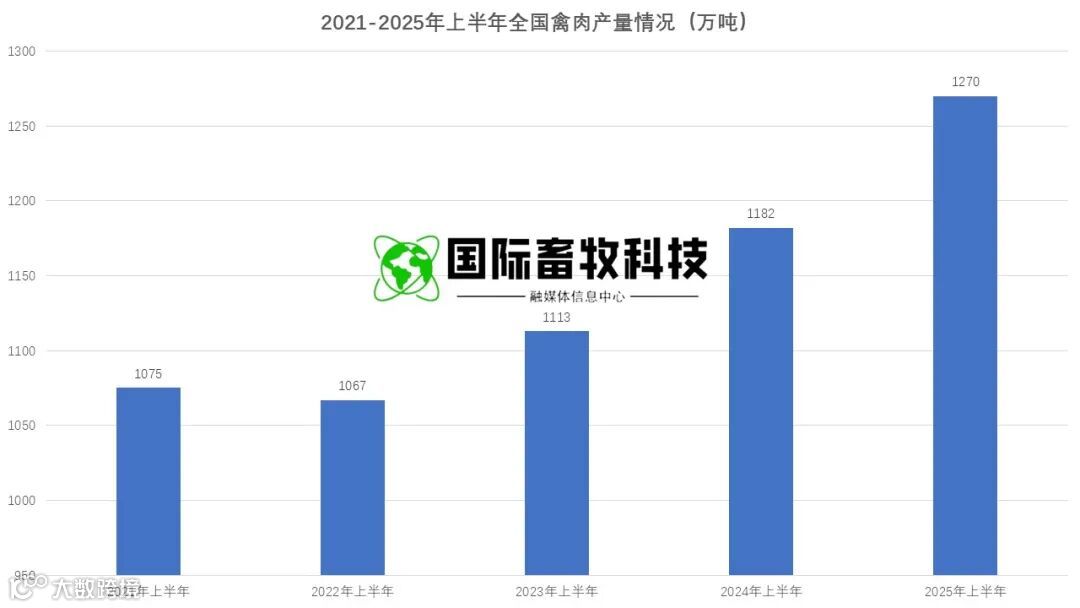 上半年禽肉产量 1270 万吨,同比增长 7.4%,首次突破 1200 万吨大关,其中二季度单季产量 629 万吨,同比增幅达 10%,这一突破源于三重核心驱动力: