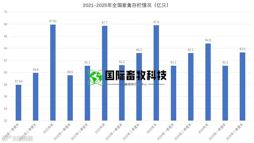 2025 年二季度末家禽存栏量 63.3 亿只,虽同比仅增 0.2%,但创五年同期新高,且较一季度末环比增长 3.6%,呈现 "去库存 - 再平衡" 的典型周期特征: