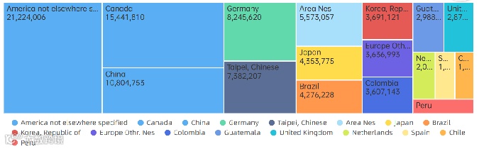 墨西哥主要进口来源国依次为:美国、中国、韩国、德国、日本。其中,中国位居墨西哥第二大进口来源国,进口占比达到19.63%,成为墨西哥重要进口来源国。且墨西哥从中国进口份额近两年稳定增长。