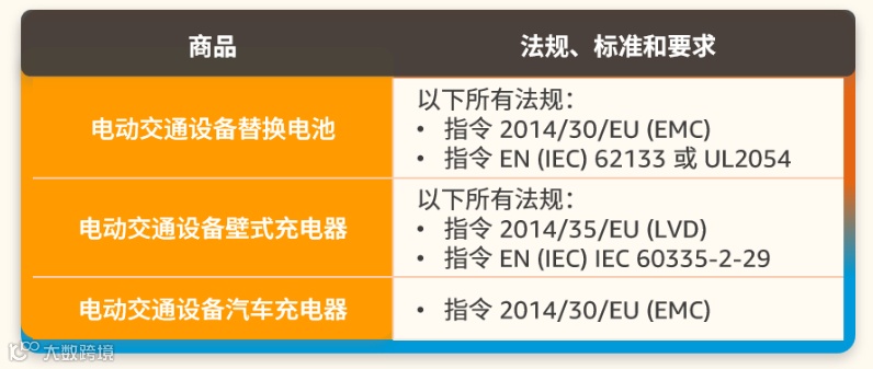 亚马逊要求所有电动交通设备均经过检测并符合下列法规、标准和要求: