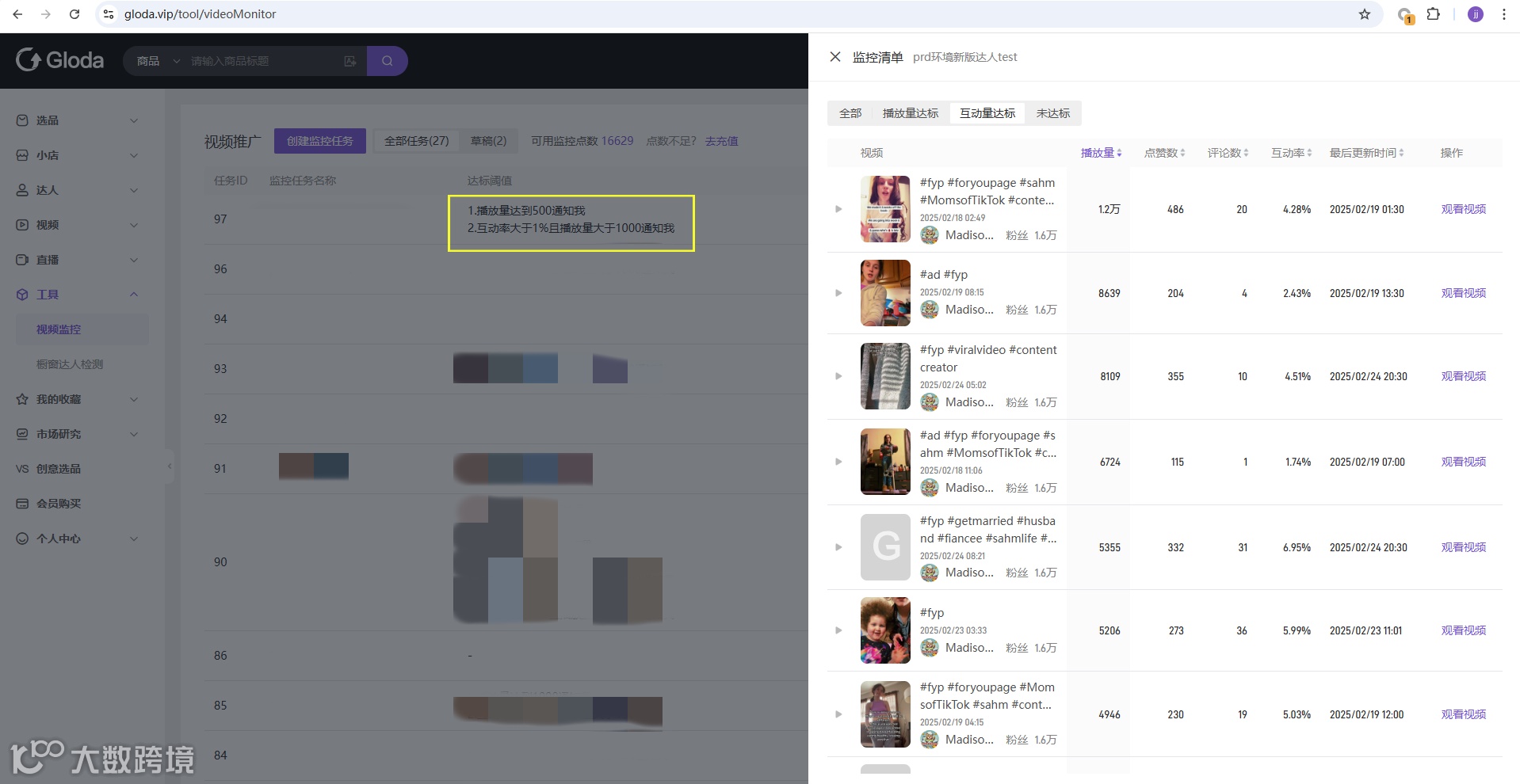 为了夯实PEAKS方法论中的“商家内容加速”和“营销放大”板块,Gloda的视频和直播实时监控数据分析功能,帮助商家深入了解内容表现力和观众的互动情况,从而优化短视频和直播的创作,提升内容互动性和吸引力。实现精准的广告投放和营销活动,放大营销效果,提高品牌曝光度和销售转化率。