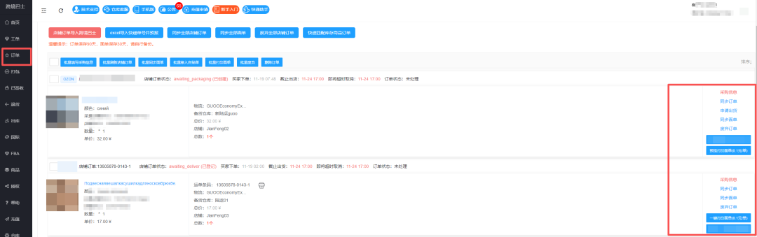 接下来我们需要通过ERP系统去完成订单的对接流程,大多数的物流公司用的都是跨境巴士(比如GUOO、CEL、UNI等等),当然也会有少数的物流公司会使用自己的系统(比如兴远)。