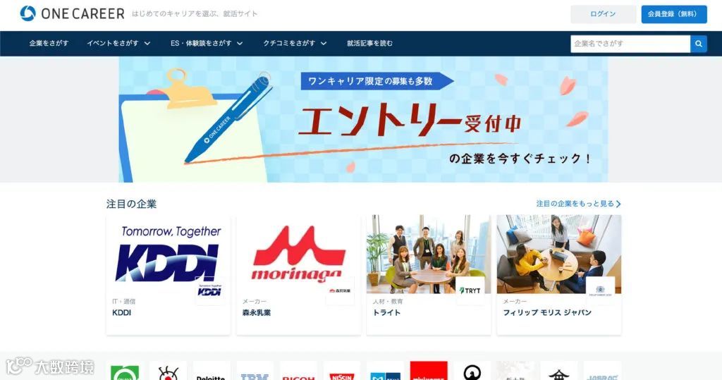 特点:日本最大就职网站,拥有超90万会员,覆盖2.5万余家企业,就职活动满意度居首。