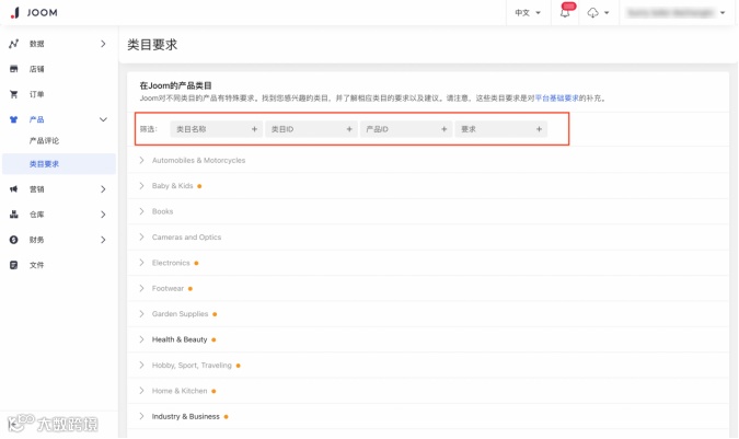 1.前往卖家后台类目要求页面。在那里您就可以找到属于不同类目的产品的属性要求。使用类目名称、类目ID、产品ID、要求等筛选会使您的搜索更快及有效。