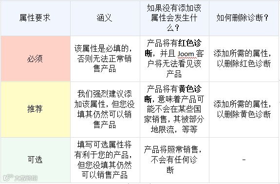 请注意:Joom只接受文件中提供的属性值。所有其他的自定义属性值将不被接受。