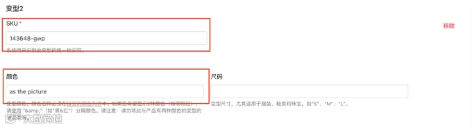 4.请根据以下公式填写你的产品变体SKU:原本产品SKU-gwp。