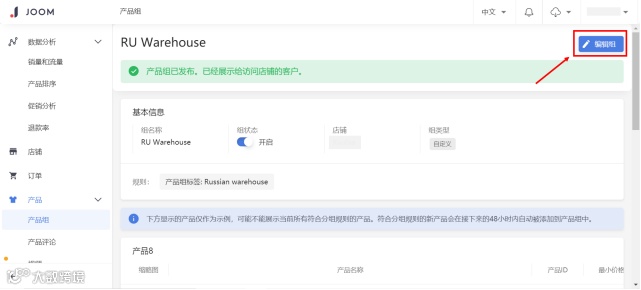 2.已发布。您的产品组已经通过审核,对店铺访客可见。