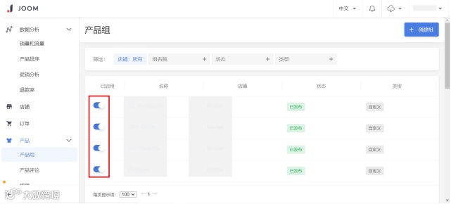 除了您自定义的产品组,Joom还会自动为店铺(已经有自定义产品组的)创建3个产品组: