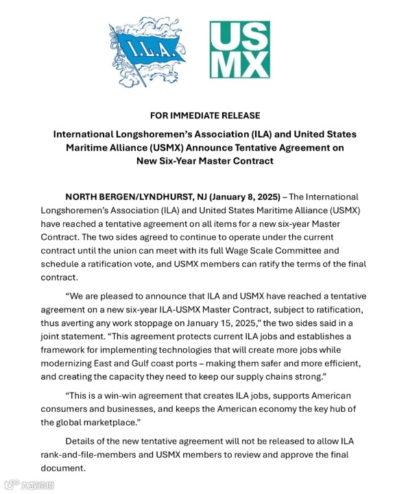 2025年2月26日,美国东部和墨西哥湾沿岸的4.7万名码头工人以99%的压倒性支持率通过新劳资协议,结束了长达半年的拉锯战。