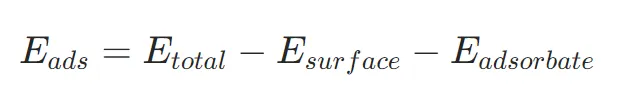 符号含义:Eads为吸附质在界面的吸附能,Etotal为吸附质-界面体系的总能量,Esurface为界面载体的能量,Eadsorbate为吸附质分子的能量。