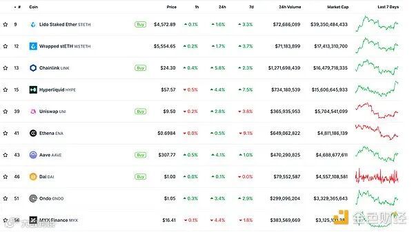 DeFi项目锁定资产前十排名及锁仓量 数据来源:defillama