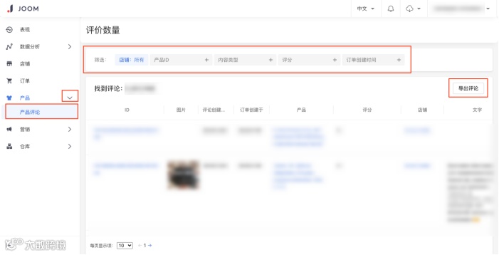 您可以点击导出评论来下载产品的评论。下载的文件位于卖家后台我的文件板块的下载页面。更多信息请阅读文章:我的文件。